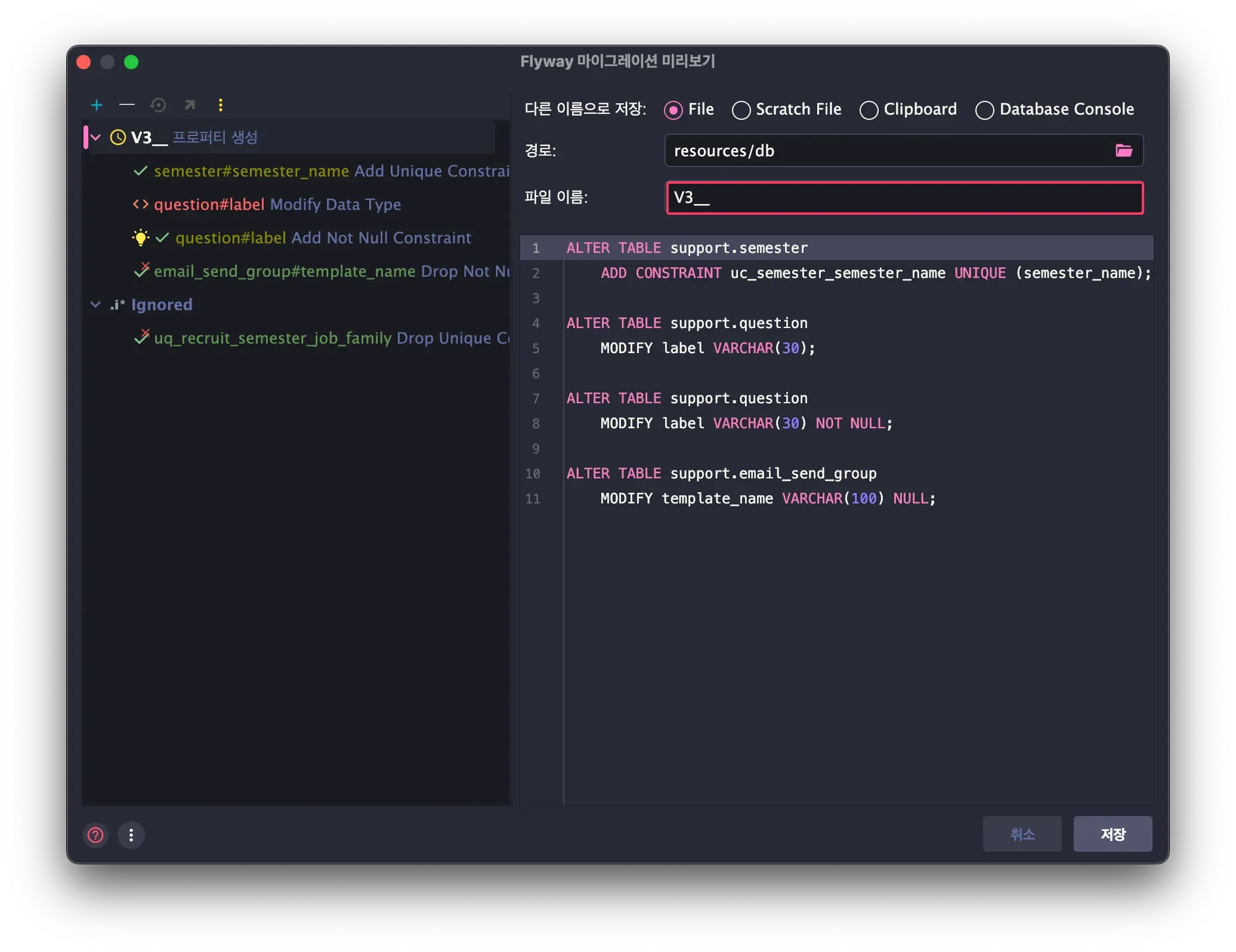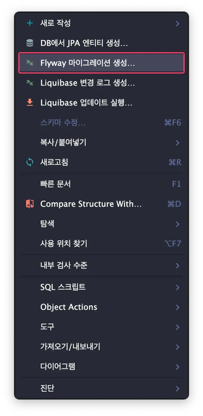 마이그레이션 파일 작성 팁(✋ 해당 팁은 IntelliJ 환경입니다.)