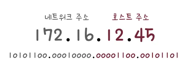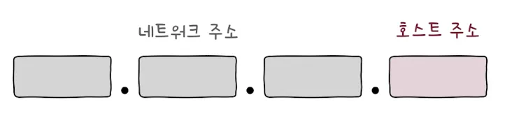 하나의 IP 주소는 크게 네트워크 주소와 호스트 주소로 나뉩니다.