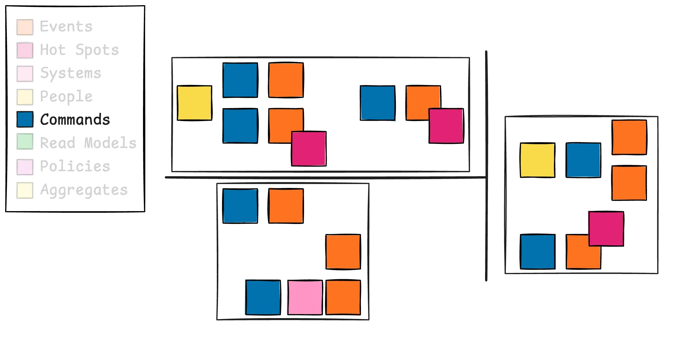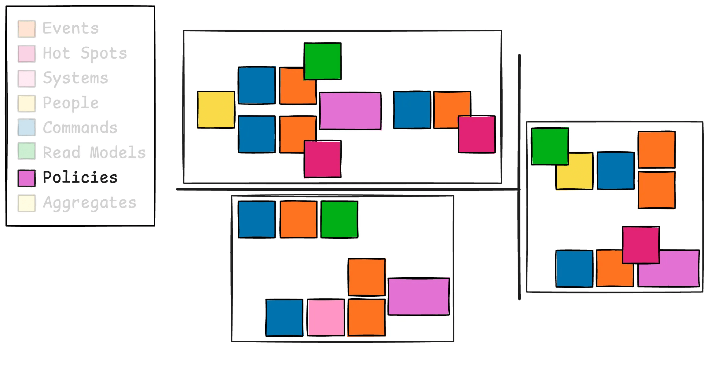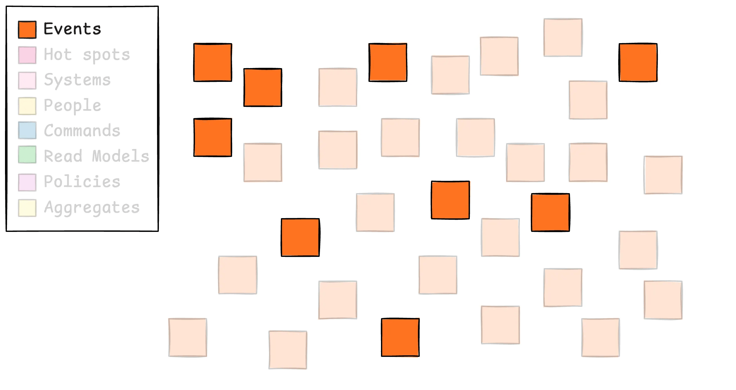 이때 중요한 것은 이런 사항들에 대해서는 당장 토론하지 않는 것이다. 이것을 토론하게 되면 이 과정에서 지치게 될 것이다. 그래서 우선 유지를 하고 나중에 문제가 해결이 되면 그 때 제거하는 방식으로 진행하면 된다. 이렇듯 핫스팟이 파악되기만 해도 이벤트 스토밍이 충분히 유의미한 활동으로 볼 수 있다.
