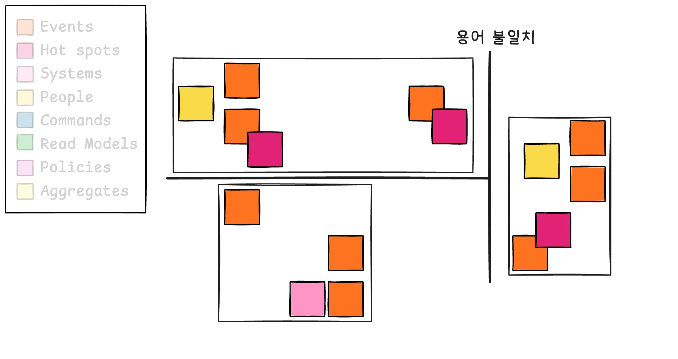 이렇게 진행하다보면 슬슬 구분되는 경계를 가지는 Context가 나타난다. 이전의 언급했던 “같은 용어, 다른 의미”나 “같은 의미, 다른 용어” 이러한 상황들 또한 점차적으로 나타날 것이다. 예를 들어, “커피”를 생각해보면 이탈리아에선 일반적으로 “에스프레소”를 떠올리지만, 한국이나 미국에서는 “아메리카노”를 떠올릴 것이다. 이러한 용어 불일치는 컨텍스의 경계를 나누는 기준이 된다.