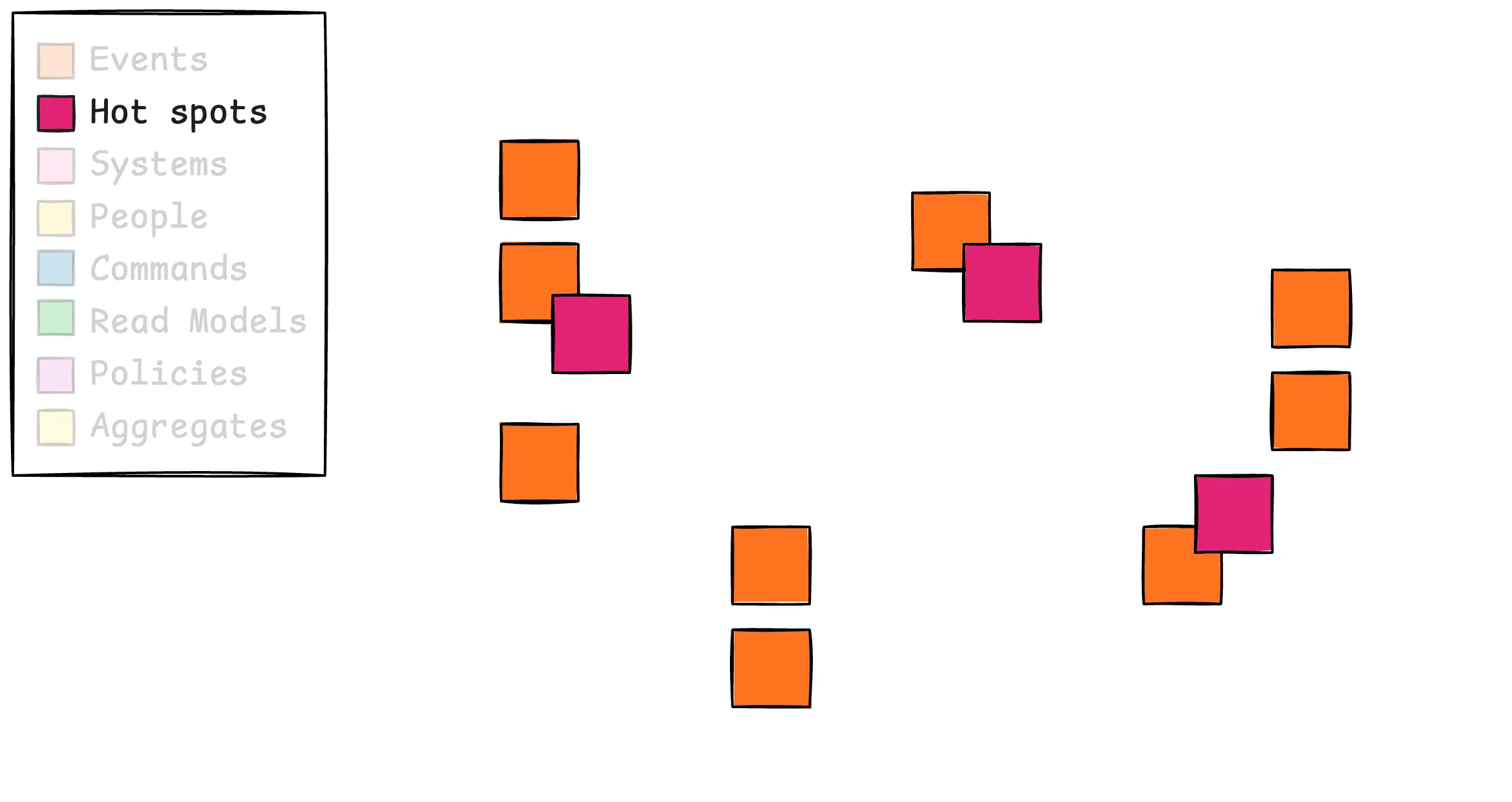 도메인 이벤트 과정들이 다 끝나면 핫스팟을 작성한다. 핫스팟은 도메인 이벤트를 작성하는 과정에서 질문, 갈등, 불평, 불만 사항들을 말하는 데, 이러한 것들을 작성하면 된다.