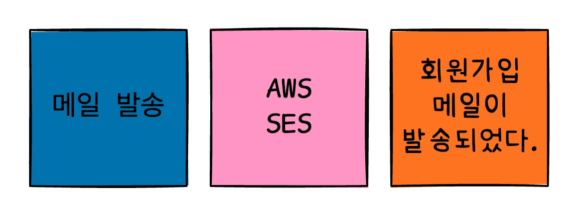 예를 들어, “회원 가입 메일이 발송되었다.”라는 이벤트를 하기 위해서 AWS의 SES라는 외부 서비스를 이용할 수 있다.