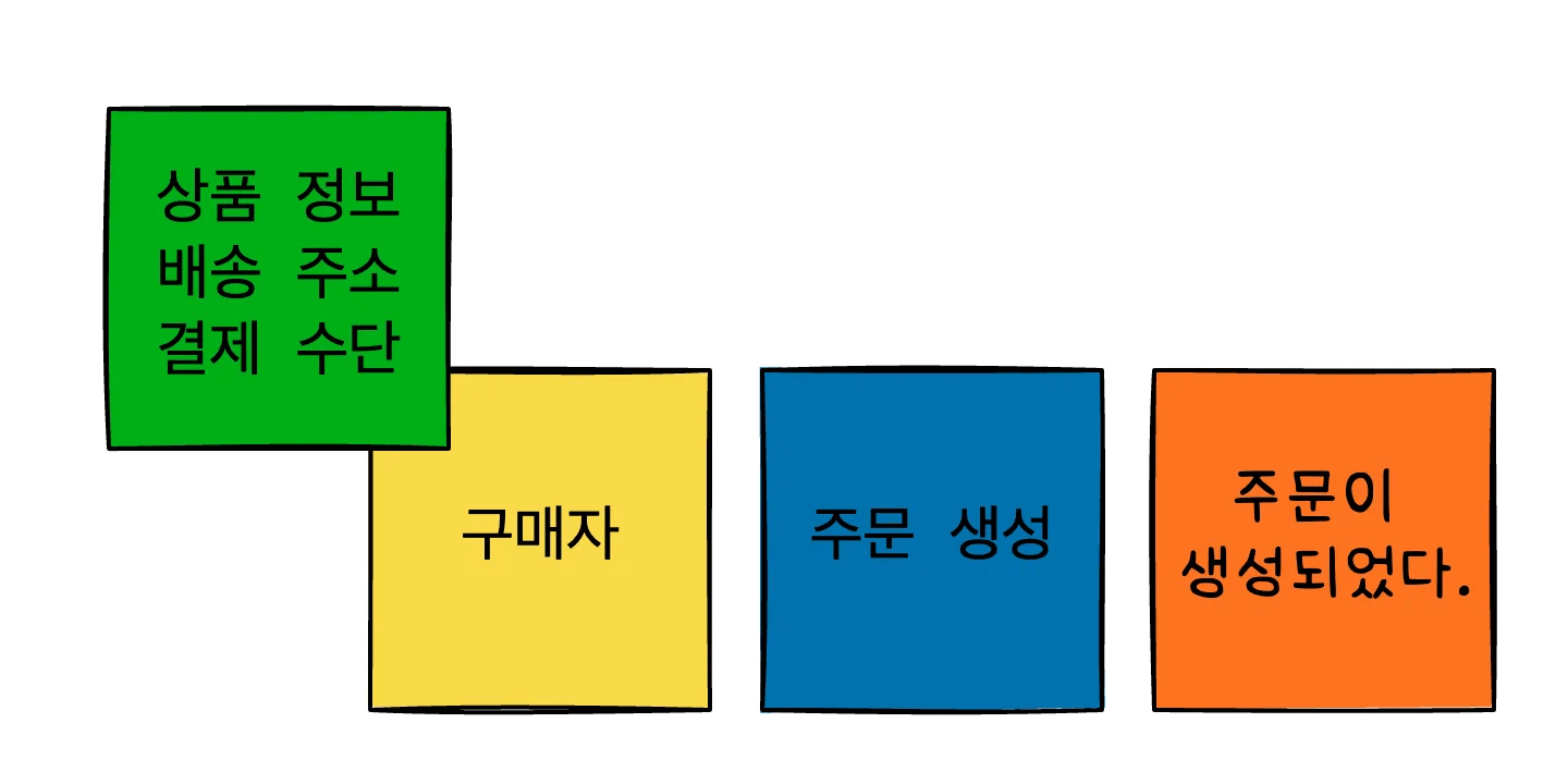 예를 들어, “구매자”가 “주문을 생성”하는 코맨드를 할 때 필요한 정보로는 “상품 목록, 배송 주소, 결제 수단”등이 될 것이다.
